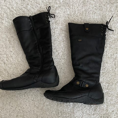 Rieker - talvisaappaat. Musta nahka. Koko 39. Lämmin vuori. Korko 6.5cm.