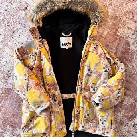 Myydään siistikuntoinen ja ehjä toppatakki, merkkiä Molo, koko 146. Sekä samaan aikaan käytössä olleet Reiman toppahousut kokoa 140.
