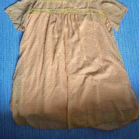 Hyväkuntoinen mekko, kerran käytössä, pesty. Edessä kaunis yksityiskohta.