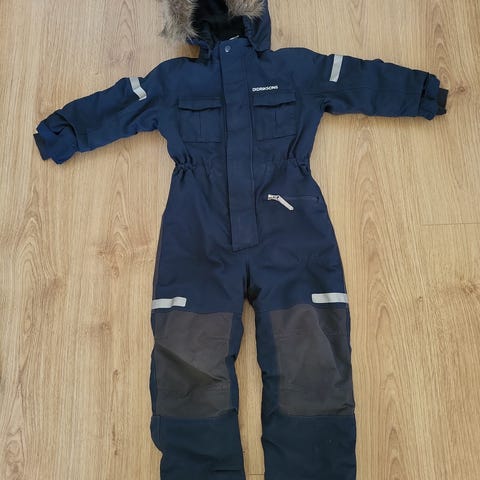 Myydään talvihaalari, yleisilmeeltään siisti, mutta toisessa lahkeessa pienet reiät sekä vähän kulumaa näistä kuvat. Huomioitu viat hinnassa.