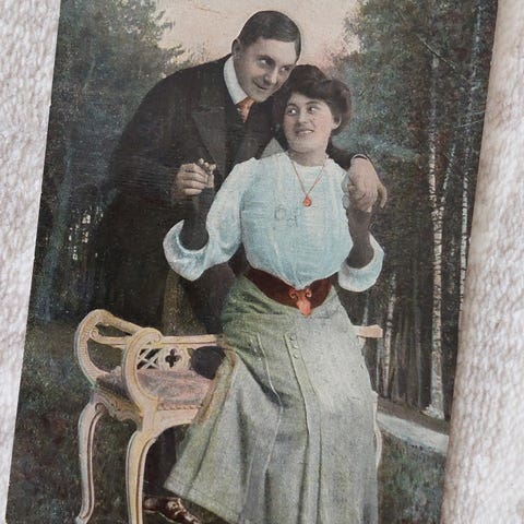 Postikortissa on suomalainen, venäläinen postimerkki ajalta, jolloin Suomi oli osa Venäjän keisarikuntaa.