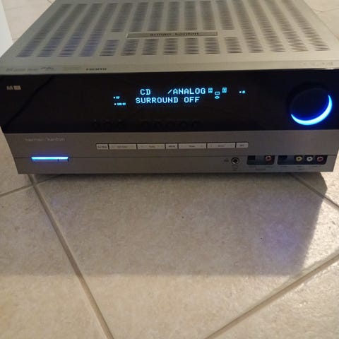 Harman Kardon AVR 255 AV-vahvistin. Monikanavainen kotiteatterivahvistin, jossa useita analogisia ja digitaalisia ääni- ja videoliitäntöjä takapaneelissa. Laitteessa on etupaneelissa selkeä näyttö, äänenvoimakkuussäädin sekä liitännät esimerkiksi kuulokkeille ja lisälaitteille. Sopii käytettäväksi kotiteatterijärjestelmän keskuksena televisioon, kaiuttimiin ja muihin äänilähteisiin liitettynä. Väriltään musta. Kaukosäädin löytyy.