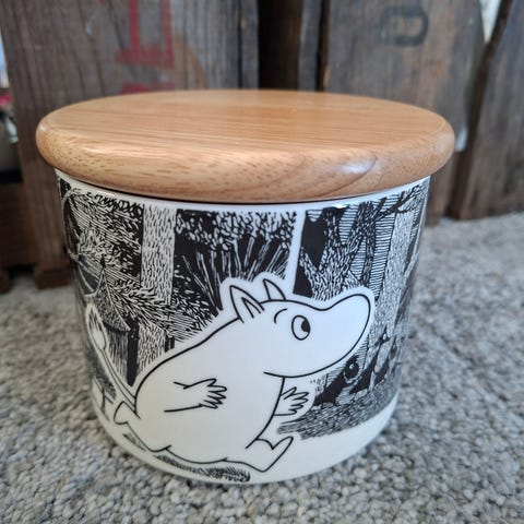 Arabian Muumi Seikkailupurkki 1.2L, erittäin hyvä ja siisti kunto, puukansi.