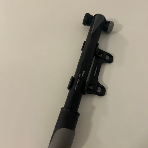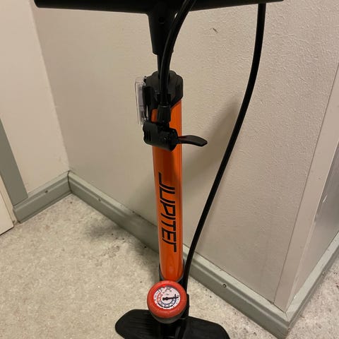 Toimiva pyörän pumppu. Pientä naarmua pinnassa.