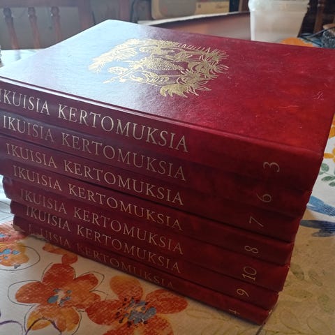 Kirjat ovat ns kohtalaisen ok-kuntoisia. Kulumaa on kansissa jo suhteellisen paljon.
