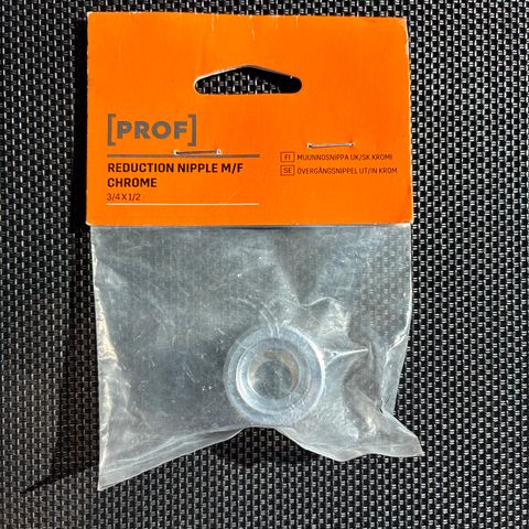 Metallinen krominvärinen nuppi tai kahva. Sopii esimerkiksi hanan tai muun laitteen kierrettävään säätöosaan. Nupissa on keskellä reikä kiinnitystä varten ja sisäpuolella muovinen rakenne. Ulkopinta on kiiltävä ja muotoiltu helpottamaan otetta.