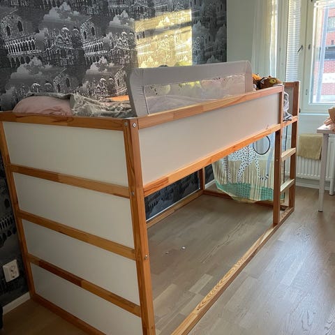 Tarroja ja piirrustuksia täynnä. Patja ei sisälly mukaan.