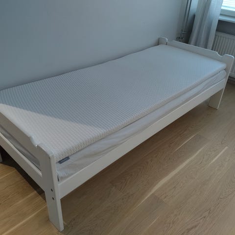 Levitettävä puusänky säilytyslaatikoilla. Rungossa on puiset sälepohjat ja kaksi vetolaatikkoa säilytystä varten. Väri on valkoinen, ja sänky on valmistettu puumateriaalista ja levymateriaalista. Sopii yhden hengen sängyksi tai levitettynä parisängyksi.Sänky on hyväkuntoinen,tukeva ja raskastekoinen,joten sopii vaikka painavemmallekkin nukkujalle.Patjat ei kuulu mukaan.Hp.70€.