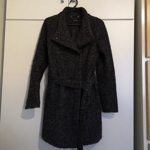 Käyttämätön H&M pitkä takki. Koko M. Väri musta. Materiaali polyesteriä. Takissa on napit, ei vetoketjua. Takissa kiiltävää mustaa sekä mattamustaa. Takki on aika ohut, ei sovi pakkassäihin.