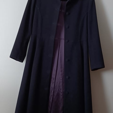 Iki-ihana lämmin trenssi solkivyöllä. Malli luo kauniin siluetin päällä, väri "prussian blue" kokoa 34-36. Villasekoitetta, vuori ilmeisemmin polyesteria.