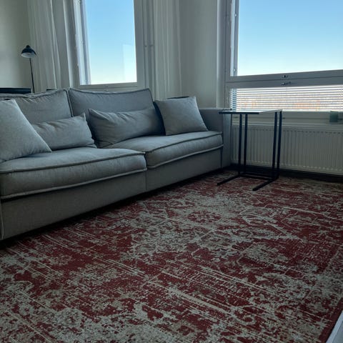 Kaunis hyväkuntoinen iso SANNA- matto. Moitteettomassa kunnossa, ollut vähällä käytöllä. Koko 160*230. Myydään muuton vuoksi.