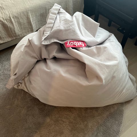 Myydään Fatboy säkkituoli värissä hiekka/greige. Koko 120x155 cm, kangas 100% puuvillaa. Päällisen voi irroittaa ja pestä. Ei tahroja tai muita jälkiä. Ei eläimiä taloudessa.