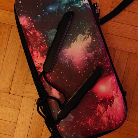 Nintendo Switch ohjaimen suojakuori. Kaksivärinen, punainen sekä sininen tarkoitettu Joy-Con -ohjaimille.