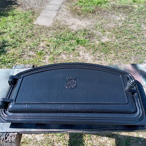 Valurautainen takanluukku koristeellisella lasilla