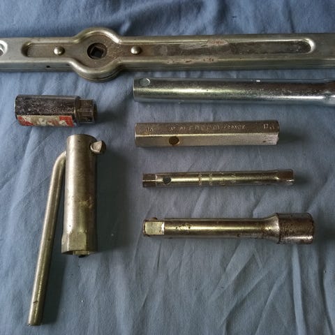 Työkalut kipinälaite ja 2 kpl litteitä räikköjä yht.8e