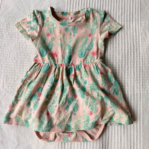 Nätti body mallinen mekko vauvalle. 0-3 kk ikäiselle vauvalle. Vastaa mielestäni parhaiten kokoa 56cm. Ollut päällä vain pari kertaa. Todella hyvässä kunnossa. Koiratalous & savuton talous.