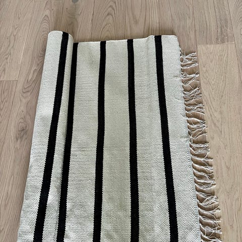 Saana ja Ollin suunnittelema puuvillamatto. Tarkat mitat 128 x 196 cm. Värit tuollaiset hieman kuluneet/haaleat, eli haaleammat kuin ensimmäisessä kuvassa. Lähikuvien värit lähimpänä todellisuutta.