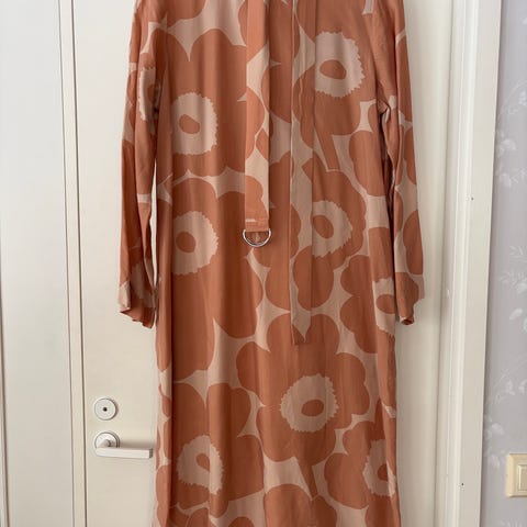 Marimekko Pastelli mekko, koko 44. Lyhythihainen naisten mekko, jossa monivärinen, raidallinen kuosi keltaisen, vihreän, sinisen ja valkoisen sävyissä. Päällikangas 100 % puuvillaa. Vuori osittain puuvillaa ja polyamidia. Pyöreä pääntie ja polvipituinen, väljä malli.