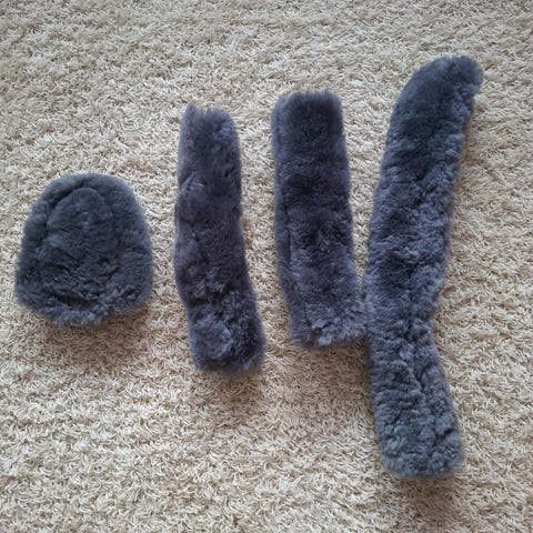 Vain kokeiltu lampaankarvavyö, pituus 75 cm solkien väli. Ei joustoja.