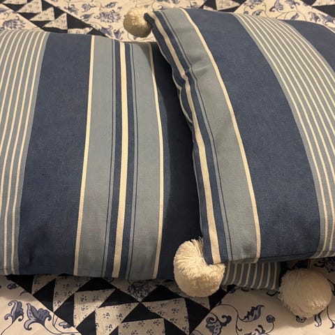 Myydään 2 kpl tyynyjä. Tyynyt sopivat esim. tuolien päälle terassille, parvekkeelle tai rottinkituoleihin.
