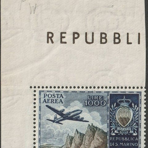 San Marino 1931 - Ilmapostin Veduta 10 l. sininen Sass 10 keskitetty käytetty