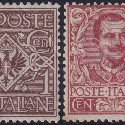 Italian kuningaskunta 1901 - Floreale 1+5 l. Sass 77+78, erittäin keskitetyt,