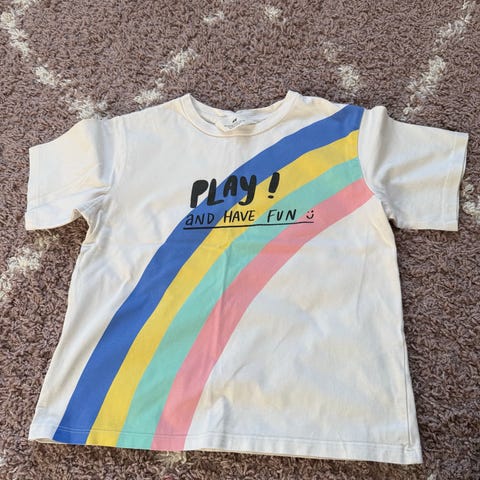 H&M lasten t-paita, koko 122/128. Unisex-malli. Vaaleanpunainen väri, edessä painettu teksti. Materiaali 100 % puuvillaa. Lyhythihainen ja pyöreä pääntie. Soveltuu arkipaidaksi lapselle, jonka pituus on noin 122/128 cm.