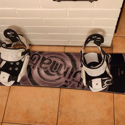 Riden laadukas lauta ja Riden siteet. Pituus 144cm. Kaipaisi varmaan kanttien teroituksen ja vahaa pohjaan. Käytön jälkeä löytyy, mutta ei mitään isompaa naarmua pohjassa tms.