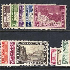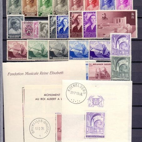 Belgia 1937/1938 - Kaksi täyttä vuosikertaa, joissa on blokit ja leimat