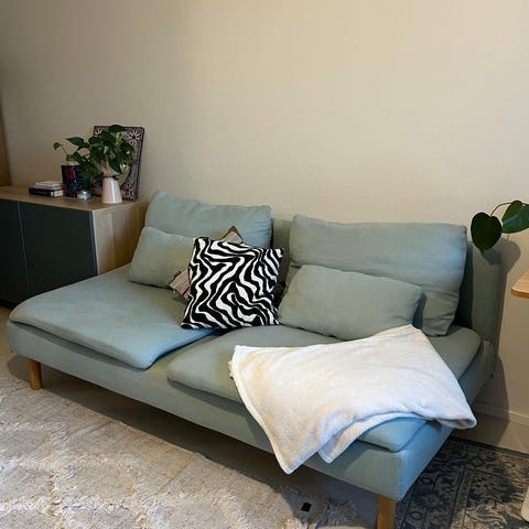 Myynnissä muutaman vuoden vanha vaaleanharmaa Ikean Söderhamn sohva. Perus siistissä kunnossa, ei näkyviä tahroja tms. Tyynyjen päälliset pesty juuri, ei eläintalous.