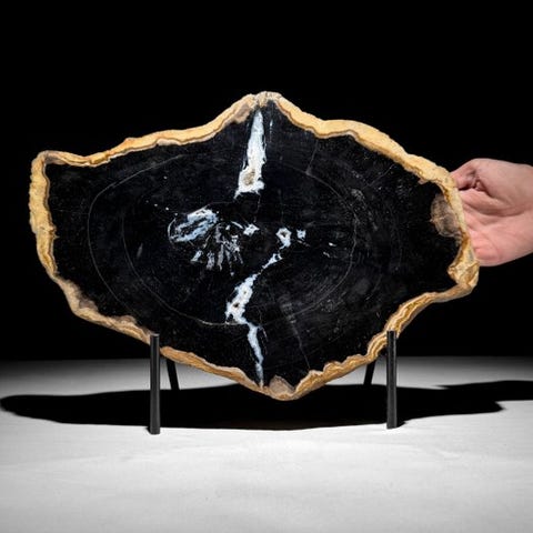 Häikäisevä pala fossiloitunutta puuta jalustalla. - Kivettynyt puu ()