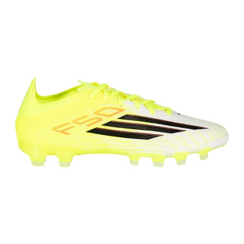 Jalkapallokengät, joissa on teko- ja luonnonnurmelle suunnitellut MG-nappulat. Erittäin ohut ja mukava synteettinen päällinen takaa optimaaliseen pallotuntuman. Normaali istuvuus.Adidaksen F50 Pro -kengät ovat nopeiksi suunnitellut jalkapallokengät, joissa on erittäin ohut Fiberskin-päällinen, joka antaa hyvän pallotuntuman, ja erityisesti suunniteltu ulkopohja, joka nopeuttaa kiihdytystä.Kengässä on myös Primeknit-kaulus mukavuuden lisäämiseksi.Sprintplate 360 -ulkopohjassa on innovatiiviset MG-nappulat. Nappulat on suunniteltu varmistamaan hyvän pidon niin teko- kuin luonnonnurmella kaikissa olosuhteissa. Fiberskin-päällisessä on lisäksi 3D-yksityiskohdat, mikä lisää kitkaa ja hallintaa jokaisella potkulla. Anatominen rakenne tekee kengästä erittäin hyvin jalkaan istuvan, kun taas kengän joustava iltti helpottaa pukemista.