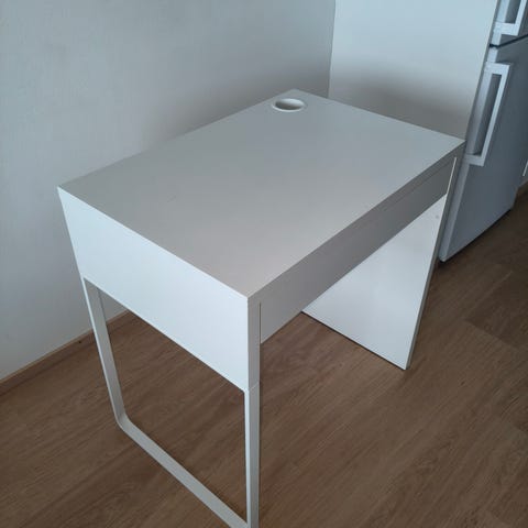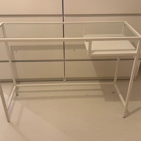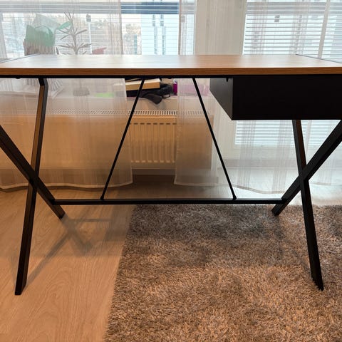 Tyylikäs pieni työpöytä. Ollut vähäisellä käytöllä. Pientä kulumaa lasipinnassa.