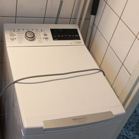 Vanha pesukone muuton tieltä pois.
