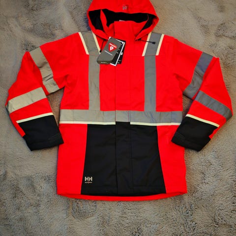 Helly Hansen Workwear miesten takki. Koko M, väri musta. Materiaali pääosin polyesteriä. Takissa on vetoketjukiinnitys ja useita vetoketjullisia taskuja edessä. Hihassa on HH Workwear -logo. Soveltuu ulkokäyttöön ja työvaatteeksi miehille, jotka käyttävät kokoa M.