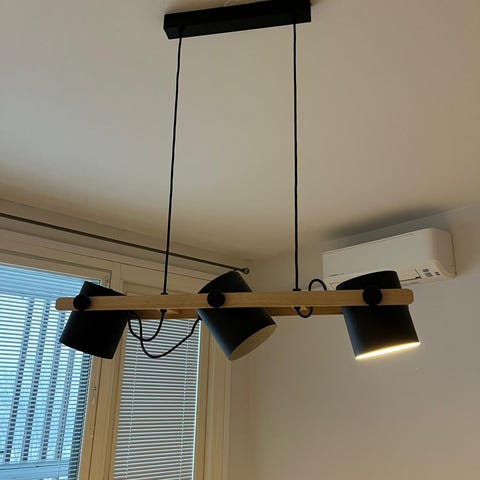 Ripustiskorkeus säädettävissä - maksimi korkeus 150cm. Polttimot jotka sopii ovat E14 kantaisia. Leveys 75cm