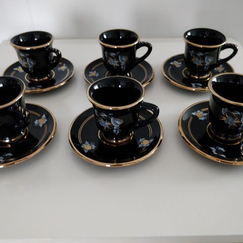 Myydään kaunis kultareunainen kahviastiasto. Vähän käytetty ja kaikki kultaukset kunnossa. Valmistaja Haas & Czjzek on perustettu vuonna 1792 ja on tunnettu korkealaatuisesta tsekkiläisestä posliinista.