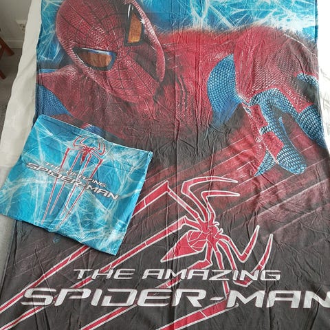 Jysk lasten pussilakanasetti, jossa sarjakuvamainen Spider-Man -kuosi. Pussilakanassa toistuu monivärinen supersankariprintti ruudutetulla taustalla. Sopii yhden hengen peitolle ja tyynylle, materiaali todennäköisesti puuvillaa tai puuvillasekoitetta. Kuosi on suunniteltu erityisesti lastenhuoneeseen ja supersankariteemaisiin tekstiileihin.