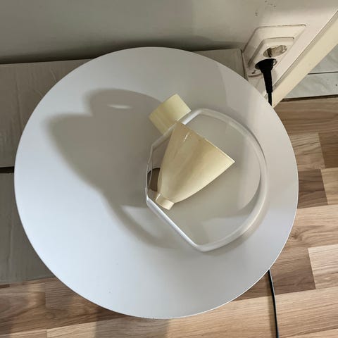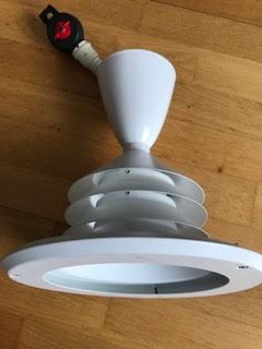 Valkoinen hissivalaisin Lival(Finland), jossa laakea varjostin. Halkaisija 41 cm. Vain nouto!