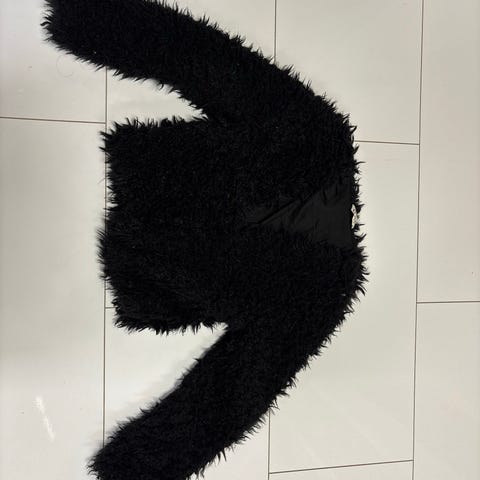 Ihanan pehmeä pörröpuku, hupulla ja kahdella taskulla. Hyvässä kunnossa.