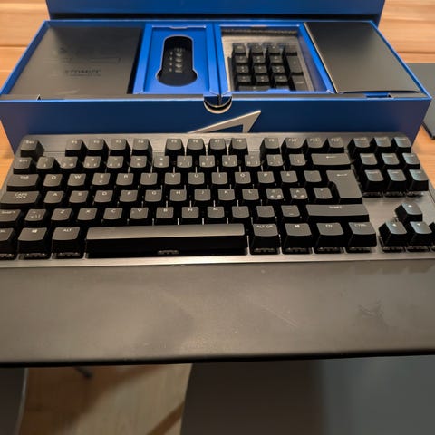 Muutaman viikon vanhat. Loistava valinta usean laitteen käyttäjälle. Näppäimistön voi yhdistää kolmeen laitteeseen kerralla ja laite vaihtuu napin painalluksella.