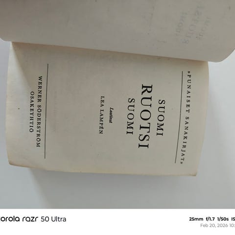 Myydään WSOY pienikokoinen sanakirja, jossa suomi–turkki–suomi-sanastoa ja hakusanoja. Soveltuu kielen opiskeluun ja perussanaston tarkistamiseen.