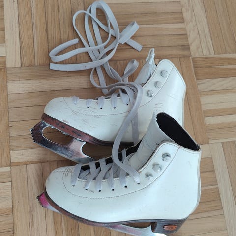 Juuri teroitetut alan ammattilaisella taitoluisteluterään, ehdittiin käydä kerran treeneissä tämän jälkeen ennen kuin todettiin että on aika vaihtaa suurempiin. 🫢
