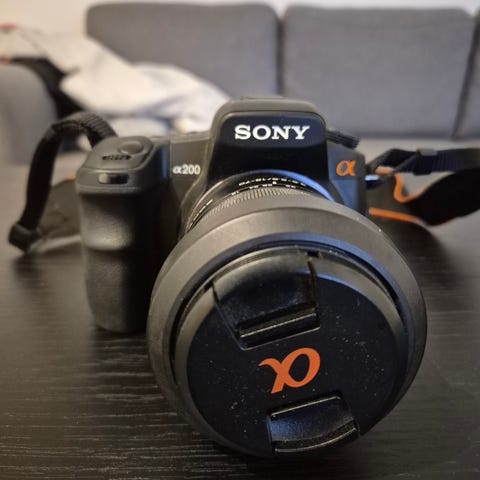 Linssi SAL1855, sd kortti, laturi ja laukku mukaan.