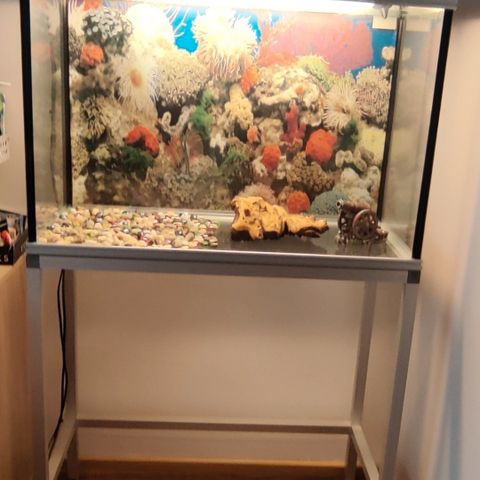 Akvaario metalli alustalla. Jalustan alla on tilaa suodattimelle ja muille tarvikkeille. Akvaario 170x 60x50, alusta 200cm. Akvaarion lasi 12cm. Myytään akvaario ja jalusta yhdessä.
