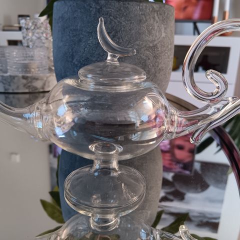 Kummallinen ankan muotoinen kannu. Lasia ja metallia. Ankka, lintu, sorsa, vesilintu.