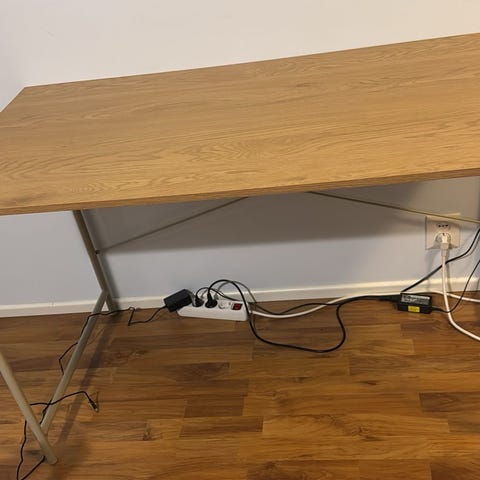 Jyskin VANDBORD työpöytä. Väri vaalea tammi/musta.