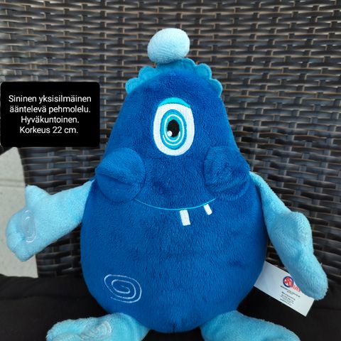 Myynnissä Kuvanmukainen pehmolelu -00 luvulta. Toimii moitteettomasti. Puhuu ja sopii lapselle. Puhuu Suomea. Pehmolelun nimeä en muista.