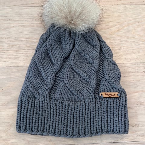 100% merinovillaa, asustesetti neulottu saman värin kahdesta eri värjäyserästä, tästä johtuen nähtävillä sävyeroa
