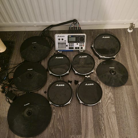 Ion idm02 sähkörummut jossa 7 padia ja kaksi jalkapedaalia, moduulissa tilaa kahdelle lisä pädille ja moduuli identtinen Alesis sr16 rumpukoneen kanssa joka on maailman myydyimpiä ilmestymisestään ja myynnissä vieläkin